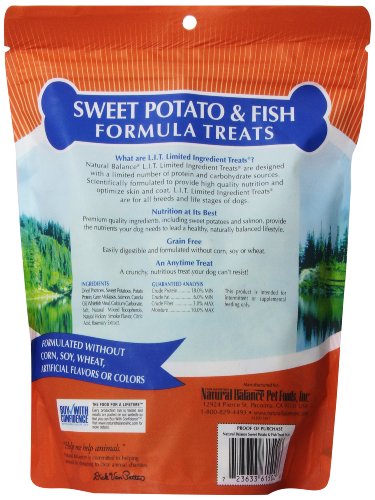 Natural Balance Sweet Potato & Fish Formula Treats are special Allergy Formula Treats, made specifically for dogs prone to allergies, and a perfect complement to Natural Balance Sweet Potato & Fish Dry Dog Food. Natural Balance Sweet Potato & Fish Formula Treats are a proven formula for dogs with allergies based on our unique blend of a premium protein source not commonly found in dog foods. Some dogs may be highly sensitive to commonly used proteins, carbohydrates and food additives in their diet. Allergic reactions can lead to irritable bowel, upset stomach, and a number of skin problems. Natural Balance has created Sweet Potato & Fish Formula Treats for dogs with these food allergies. Along with our Fish & Sweet Potato Canned Formula and Sweet Potato & Fish Dry Dog Food, dogs with allergies can now have a complete allergen-free diet! Available in 14 oz.