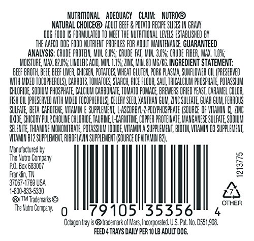 NATURAL CHOICE Adult Beef and Potato Recipe Slices in Gravy Dog Food contains no artificial flavors, colors or preservatives. Plus, we include real, great-tasting beef and optimal levels of linoleic acid and zinc for healthy skin and coats. It’s premium nutrition your dog deserves for a healthy, happy and long life.