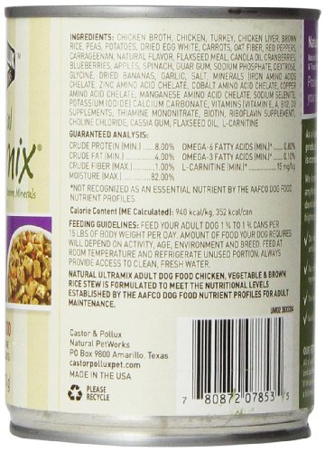 Natural Ultramix Chicken, Vgatable & Brown Rice Stew Adult Dog Food, 13.2 Ounce Cans (Case of 12)