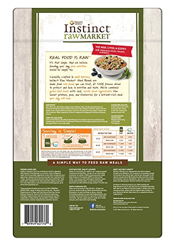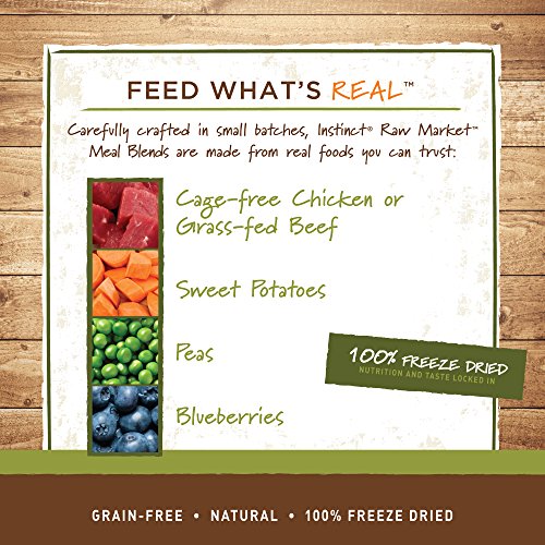 Real food is raw. It’s that simple. And we believe feeding your dog pure nutrition should be simple too. Carefully crafted in small batches, Instinct Raw Market Meal Blends are made from real foods you can trust, all 100% freeze dried to protect and lock in nutrition and taste. We’ve combined grass-fed beef with real, whole food ingredients like sweet potatoes, peas and blueberries for a nutrient rich meal your dog will love. Serving is simple! Just add water to make a meal. Complete and balance nutrition for dogs. Made in USA facilities.