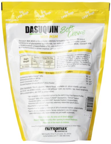 Dasuquin soft chews with msm are the exclusive veterinary formulation that contains the potent combination of glucosamine hydrochloride, low molecular weight chondroitin sulfate and avocado/soybean unsaponifiables (asu) and methylsulfonylmethane (msm). dasuquin with msm is formulated to deliver maximal cartilage support.