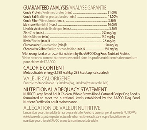 NUTRO Large Breed Adult Chicken, Whole Brown Rice and Oatmeal Recipe Dog Food 30 Pounds