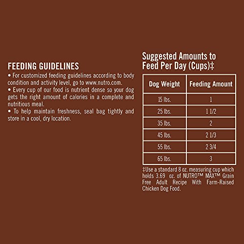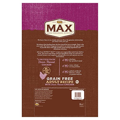 • Contains one (1) 25-lb. bag of NUTRO MAX Adult Grain Free Recipe With Farm Raised Chicken Dry Dog Food