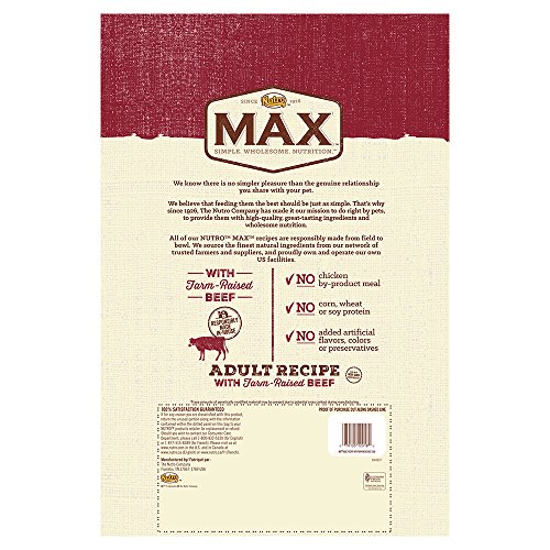 Give your dog a natural, great-tasting meal they will look forward to every time with NUTRO MAX Adult Recipe With Farm Raised Beef and Brown Rice Dry Dog Food. Our all natural food for dogs is made with farm-raised beef and brown rice. This natural beef dog food also is formulated with added vitamins and minerals to provide complete and balanced nutrition in every bowl. Your dog will love the savory flavors of real beef and whole grains, and you will like that NUTRO MAX Food for Dogs never contains chicken by-product meal, corn, wheat or soy protein.