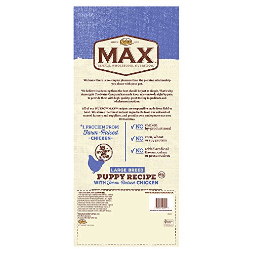 • Contains one (1) 25-lb. bag of NUTRO MAX Large Breed Puppy Recipe With Farm Raised Chicken Dry Dog Food