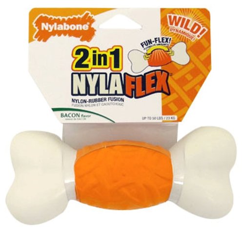 Nylabone's NylaFlex toys are a new innovation designed with a new 2-in-1 revolutionary nylon-rubber fusion technology creating a flexible yet strong dog toy.