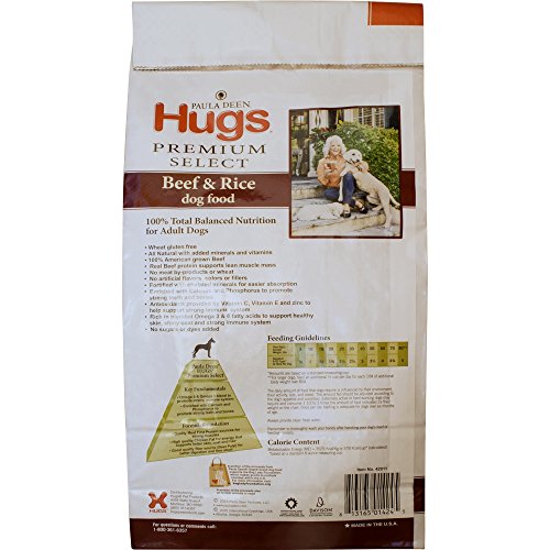 The Paula Deen by Hugs Premium Select dog food is 100% total balanced nutrition for adult dogs. A specially crafted wholesome recipe made with a taste all dogs will love! Quality, meat-first proteins build strong muscles and are 100% American grown. It's wheat gluten free with no meat by-products, no sugars or dyes and no artificial flavors, colors or fillers. The high quality chicken fat provides energy and supports better skin, coat and hair. And it's a good quality fiber source (beef pulp) for better digestion and firm stool. Enriched with Calcium and Phosphorus to promote strong teeth and bones, antioxidants are provided by Vitamin C, Vitamin E and zinc to help support a strong immune system. Paula Deen by Hugs Premium Select dog food is also rich in blended Omega 6 and Omega 3 fatty acids to support healthy skin, shiny coat and a strong immune system.