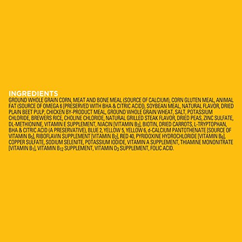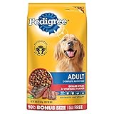 Give your dog the taste of succulent steak accented with hearty vegetables in PEDIGREE Adult Grilled Steak and Vegetable Flavor Dog Food. Prepared with whole grains for healthy digestion, plus real meat protein, our steak-flavored dry dog food is designed to keep your adult dog feeling their best. This PEDIGREE Dry Dog Food is also formulated with essential nutrients and omega-6 fatty acids to promote healthy skin and a shiny coat. Best of all, our tasty kibble for dogs features a unique crunchy texture to help clean your dog's teeth with every bite. So whether you're looking for a nutritious formula to promote health and vitality or you simply want to give your companion a great-tasting meal, PEDIGREE Adult Dry Dog food is a delicious way to care for your adult dog.