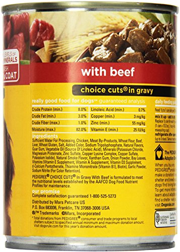 PEDIGREE CHOICE CUTS in Gravy With Beef Canned Dog Food 13.2 Ounces (Four 6-Can Cases)