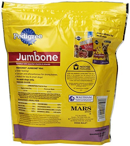 More than just a dog chew, PEDIGREE JUMBONE Mini Dog Snacks are a delicious dog treat with a crunchy bone-like shell on the outside, and a flavorful, meaty center on the inside. Our long-lasting adult dog treat is fortified with essential vitamins and minerals and features a mini size to help keep small dogs healthy. PEDIGREE Small Dog Treats are mini treats you can trust, and ones your dog will love.