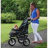 What's more special than our Special Edition stroller? Our new NV Pet Stroller. No zippers means no hassle when trying to open and close the stroller. Our new NO-ZIP technology means that you can easily gain access to your pet without fumbling with difficult zippers. The NV Pet Stroller also features an elevated paw rest. Your pet can easily look out of the stroller by using the front bar for support. This stroller navigates over rough terrain with ease, whether jogging or strolling, thanks to the front locking wheel. Speaking of strolling, the new panoramic view window allows your pet to remain safe inside of the stroller without missing any sights along the way. This stroller also features a plush bolster pad, air tires for a smoother ride and new stylish colors and embroidery, what more could a pet want? Suitable for pets up to 70-Pounds.