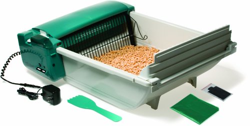 Self-cleaning automatic litter box with smart sensor for triggered activation of cleaning cycle. Motor and scooping rake automatically runs 15 minutes after cat leaves the box with a powerful, yet quiet motor unit. Works with your favorite clumping litter; no need to buy special or costly crystal litter cartridge replacements.