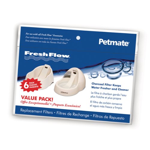 Petmate fresh flow filter is designed to use with PetMate deluxe cat and dog fountains. Filter is available in pack of 6. Filter helps to keep pet's drinking water tasting clean and fresh. Measures 5-inch length by 4-1/3-inch width by 1-inch height.