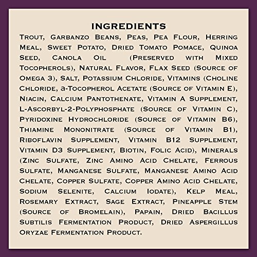 Since breeder's choice began in 1947, we've been uncompromising in our pursuit of the healthiest nourishment for the pets we love. Our commitment means we use only high quality natural ingredients, with vitamins and minerals, carefully chosen and meticulously cooked for complete and wholesome nutrition. We balance our formulas to provide optimum nutrition for your pet's health and protection. This is what we call the pinnacle holistic difference. Many pet parents are choosing to serve grain-free diets due to concerns about potential ingredient sensitivities. Trout is the first ingredient in this recipe. And unlike others, we don't cut corners by adding less expensive meat proteins so you can trust you are serving high quality proteins that your dog deserves.