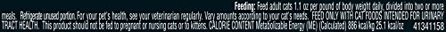 Feed adult cats 1.1 oz per pound of body weight daily, divided into two or more meals. Vary amounts according to your cat's needs. FEED ONLY WITH CAT FOODS INTENDED FOR URINARY TRACT HEALTH. This product should not be fed to pregnant or nursing cats or to kittens.