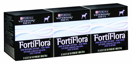 Purina FortiFlora Canine Nutritional Supplement contains the beneficial microorganisms found naturally in your dog's digestive system to help manage and shorten episodes of diarrhea. Common causes of diarrhea for dogs and puppies include food changes, antibiotic therapy and environmental stress.