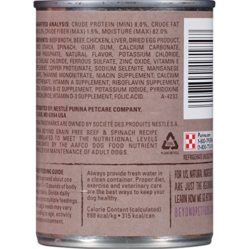 Purina Beyond Wet Dog Food, Grain Free, Beef & Spinach Recipe, 12.5-Ounce Can, Pack of 12