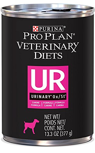 Purina® Pro Plan® Veterinary Diets UR Urinary® Ox/StTM Canine Formula offers dietary benefits that provide optimal nutrition while meeting your adult dog's special needs: Promotes a urinary environment unfavorable for the development of calcium oxalate and sterile struvite stones.* High protein Moderate fat No added salt *Most struvite uroliths in dogs are caused by urinary tract infections (UTI). In the case of non-sterile struvite uroliths, it is important to treat with the appropriate antibiotic in addition to dietary management. No Prescription is required. This is simply food that has been modified to meet the special needs of dogs with urinary issues. There are no medications in this food. Ingredients: Chicken, water sucient for processing, rice, meat by-products, liver, powdered cellulose, guar gum, carrageenan, magnesium sulfate, potassium chloride, potassium citrate, natural smoke flavor, added color, calcium sulfate, Vitamin E supplement, zinc sulfate, thiamine mononitrate, mono and dicalcium phosphate, ferrous sulfate, niacin, copper sulfate, calcium pantothenate, manganese sulfate, pyridoxine hydrochloride, Vitamin B-12 supplement, riboflavin supplement, Vitamin A supplement, folic acid, Vitamin D-3 supplement, biotin, potassium iodide, sodium selenite. A-2594