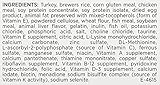 | Pro Plan® Turkey & Rice Indoor Formula for adult cats aged 11+ is specially formulated to provide optimum nutrition for older, less active indoor cats. | |||||||||||||||||