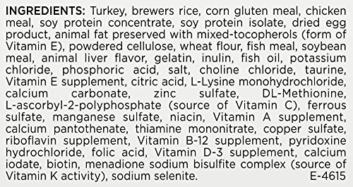 Pro Plan Senior 11+ Indoor Care Turkey & Rice Formula is specially designed for indoor cats 11 years of age or older and their lifestyle. It is made with real turkey for a taste cats love, and it is specially formulated to help bolster your cat's key protective systems while it meets the energy and nutritional needs of a healthy senior cat.