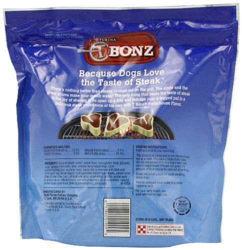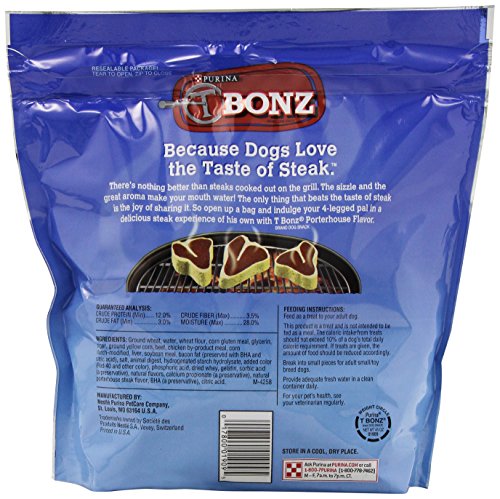 T-Bonz Porterhouse Flavor Chewy Dog SnacksThere's nothing better than steak cooked out on the grill. The sizzle and the great smell make your mouth water! You love the taste of steak and so does your dog – now you can give your dog a great steak experience every day with T Bonz dog snacks!