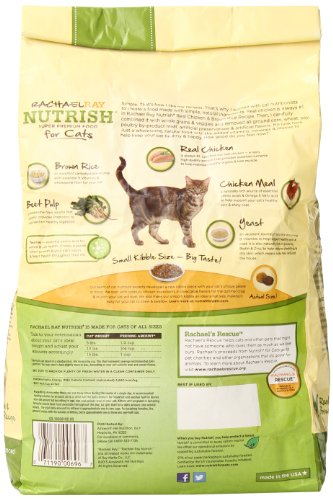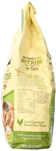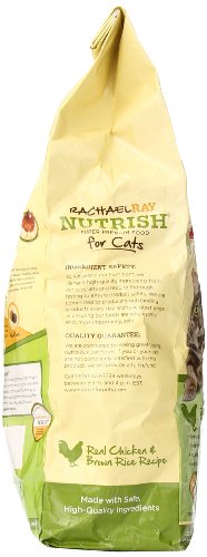 Rachael Ray Nutrish Super Premium Food for cats. Real Chicken & Brown Rice Recipe. Working with a team of cat nutrition experts, Rachael Ray created a cat food made with simple, natural ingredients. The result? Rachael Ray Nutrish Natural Cat Food with Real Chicken & Brown Rice. Real chicken is always the number one ingredient in every bag, combined with wholesome brown rice. There's no ground corn, wheat or soy. And there's never any by-products, artificial flavors or artificial preservatives. Just wholesome whole grains and veggies, plus the vitamins, minerals and taurine for a healthy food with the savory chicken taste cats love.