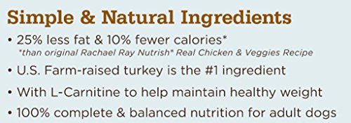 Rachael Ray Nutrish Turkey, Brown Rice & Venison Recipe is made with simple, natural ingredients, like real U.S. farm-raised turkey, which is always the number one ingredient, combined with wholesome brown rice and protein-rich venison, plus the vitamins and minerals that your dog needs for a complete and balanced diet.
