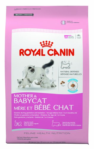 Royal Canin Mother and Babycat supports the kitten's natural defenses with prebiotics and a complex of antioxidants including vitamin E, vitamin C, taurine and lutein. Promotes digestive health with highly digestible proteins and prebiotics. A very small, rehydratable kibble helps facilitate food intake and stimulate appetite. Dry cat food for queens during gestation and lactation and young kittens from 1 to 4 months old. Size: 3.5 pounds.