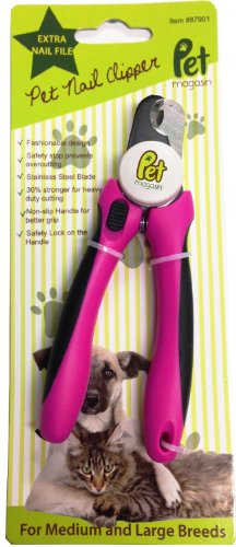 Dog Nail Clippers – Sharp and Strong Stainless Steel Blade for Medium and Large Breeds – Pet Nail Trimmer with Safety Stop and Nail File © Pet Magasin (Pink, Large)