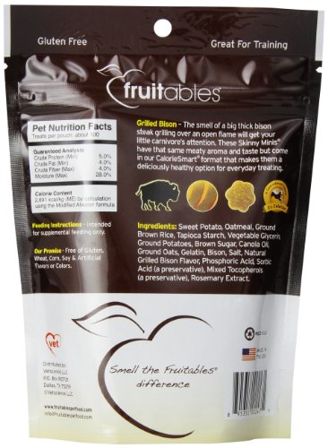 Fruitables Skinny Minis Chewy Dog Treats in Grilled Bison Flavor, 1-5-Ounce