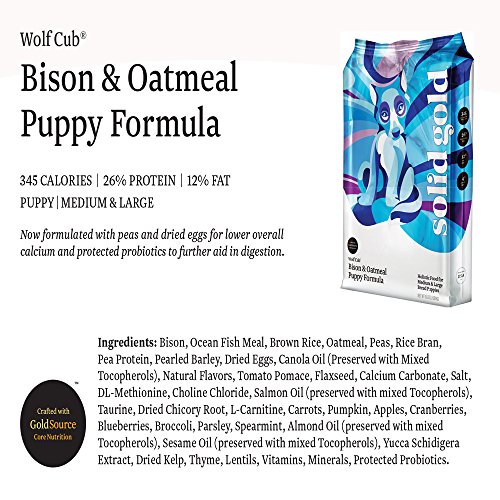 Solid Gold Wolf Cub Holistic Dry Dog Food, Bison & Oatmeal, Moderately Active Puppies, Medium & Large, 24lb Bag