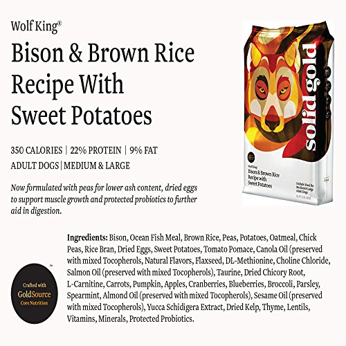 Solid Gold Wolf King Holistic Dry Dog Food, Bison, Brown Rice & Sweet Potatoes, Moderately Active Adult Dogs, Medium & Large, 24lb Bag