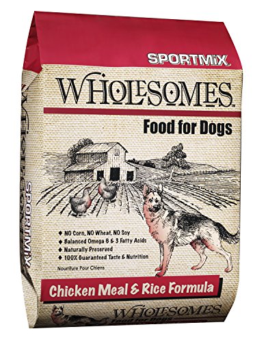 SPORTMIX Wholesome Chicken Meal & Rice Formula is designed for dogs needing a high energy food from a single source high quality chicken protein. Wholesome Chicken Meal & Rice Formula is made without high-moisture protein sources or common grains like corn, wheat or soybeans. Wholesome Chicken Meal & Rice Formula nutritionally balances Omega-6 and Omega-3 fatty acids to promote good skin and hair coat. The addition of natural vegetable fibers help support good digestion. SPORTMIX Wholesome Chicken Meal and Rice Formula supplies your dog with a naturally preserved, 100% complete and balanced diet for a healthy active life. Available in 40 and 16.5 lb. bags. Simply a wholesome alternative to common dog food formulas.