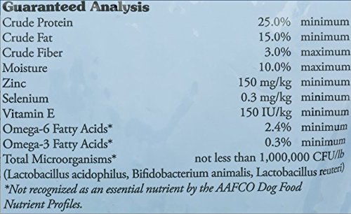 Salmon, ocean fish meal, sweet potatoes, potatoes, peas, canola oil, garbanzo beans, salmon meal, smoked salmon, potato fiber, natural flavor, salt, choline chloride, dried chicory root, tomatoes, blueberries, raspberries, yucca schidigera extract, dried Lactobacillus acidophilus fermentation product, dried Bifidobacterium animalis fermentation product, dried Lactobacillus reuteri fermentation product, vitamin E supplement, iron proteinate, zinc proteinate, copper proteinate, ferrous sulfate, zinc sulfate, copper sulfate, potassium iodide, thiamine mononitrate (vitamin B1), manganese proteinate, manganous oxide, ascorbic acid, vitamin A supplement, biotin, niacin, calcium pantothenate, manganese sulfate, sodium selenite, pyridoxine hydrochloride (vitamin B6), vitamin B12 supplement, riboflavin (vitamin B2), vitamin D supplement, folic acid. Contains a source of live, naturally occurring microorganisms.