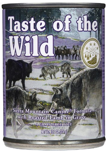 A great tasting, complement to the dry Taste of the Wild formulas, the Sierra Mountain Canine Formula in Gravy will satisfy even the most finicky dogs. This complete and balanced formula can also be fed as your pet's sole diet. Made with real roasted lamb, this formula offers a taste sensation like no other. Contains sweet potatoes and peas, perfect sources of highly digestible energy. Supplemented with fruits and vegetables, this formula delivers natural antioxidants to help give your friend a healthy lifestyle. Protein 7% Minimum, Fat 6% Minimum Calories: 990 kcal/kg, 370.3 kcal/can Calculated Metabolizable Energy Available in 13.2 ounce cans Ingredients Lamb, lamb broth, vegetable broth, lamb liver, dried egg, peas, natural flavor, modified potato starch, sweet potatoes, potatoes, calcium carbonate, roasted lamb, guar gum, potassium chloride, sodium tripolyphosphate, salt, dried chicory root, tomatoes, canola oil, blueberries, raspberries, choline chloride, yucca schidigera extract, iron proteinate (a source of chelated iron), zinc proteinate (a source of chelated zinc), vitamin E supplement, copper proteinate (a source of chelated copper), manganese proteinate (a source of chelated manganese), riboflavin supplement, sodium selenite, calcium iodate, thiamine mononitrate, niacin supplement, calcium pantothenate, vitamin A supplement, vitamin B12 supplement, potassium iodide, biotin, vitamin D3 supplement.