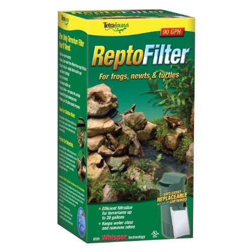 Using Whisper filtration technology, the ReptoFilter provides quality three-stage filtration, removing debris, discoloration, and odors and ammonia from terrariums with up to 20 gallons of water. The design allows for operation in shallow-water environments, making it ideal for creating waterfalls. A top lid keeps reptiles out of the filter chamber while providing easy access for replacing filter cartridges.