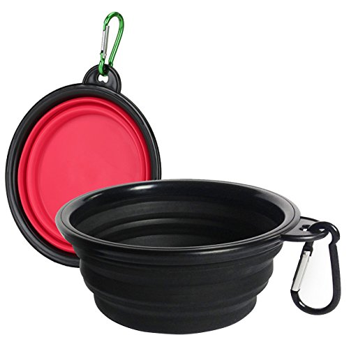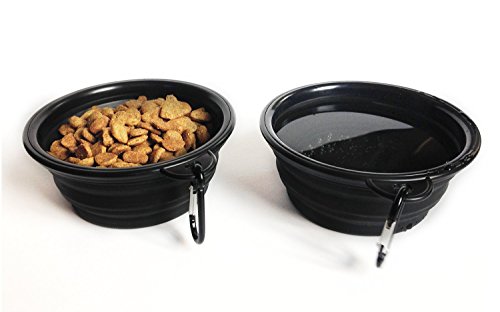 Travel Dog Bowl, Collapsible Pets Travel Bowl 2-Pack For Food & Water Portable Food Bowls For Dogs &Cats With Chip High Grade Silicone Dog Bowls Eco-Friendly & Safely