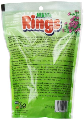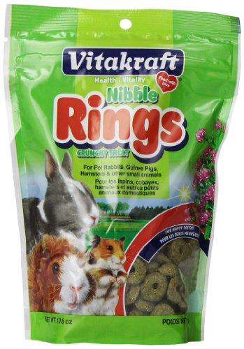 Vitakraft Nibble Rings are a delicious crunchy treat for pet Rabbits, Guinea Pigs, Hamsters and other small animals. Made with Natural grains and alfalfa, Nibble Rings are a healthy way to treat your pet.