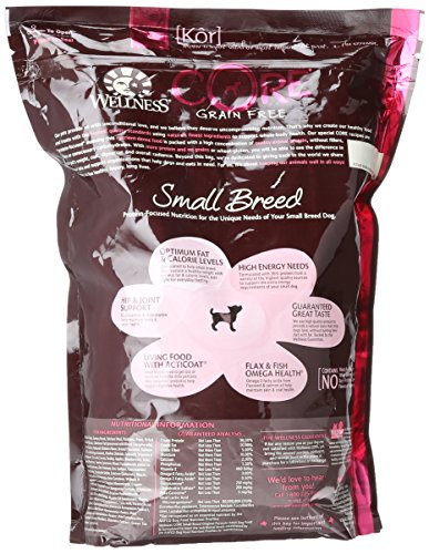 Wellness CORE Natural Grain Free Dry Dog Food Small Breed Health Turkey & Chicken Recipe is healthy, 100% natural grain free dog food for adult small breed dogs made with turkey, chicken, salmon oil and fruits and vegetables to help support your dog's optimal health, featuring smaller kibble size for small breed dogs and fortified with antioxidents, probiotics, vitamins and minerals, including fish and flax omega blend for healthy skin and coat and glucosamine and chondroitin help maintain bone and joint health. Wellness CORE grain free dog food formulas are based on the nutritional philosophy that dogs thrive on a diet mainly comprised of meat. Each grain free, nutrient-rich formula provides high quality protein for your dog with no meat by-products or fillers, grain, corn, soy, wheat-gluten or artificial preservatives, colors or flavors. Relevant search keywords: core dog food, core wellness dog food, grain free dog food, wellness core dog food, wellness dog food, wellness natural dog food, grain free dry dog food, dog food, dog food dry, dog food grain free, dogfood, dry dog food, dry dog food grain free, small breed dog food, dog multivitamin, dog probiotic, dog probiotics, glucosamine chondroitin for dogs, glucosamine for dogs, omega 3 for dogs, salmon oil for dogs, small dog food, wellness small breed dog food, dog vitamin, dog vitamins, dry dog food, dry dog food grain free, natural dog food, dog food small breed, best dog food, best grain free dog food, healthy dog food