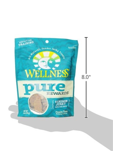 Wellness Pure Rewards Natural Grain Free Dog Treats Made in USA Only, Venison Jerky, 6-Ounce Bag