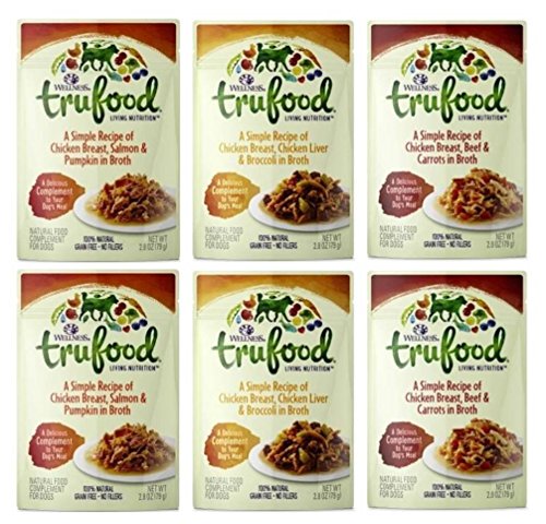 Wellness TruFood Grain Free Natural Dog Food Complement 3 Flavor Variety 6 Pouch Bundle: (2) Chicken Beef Carrots, (2) Chicken Liver Broccoli, and (2) Chicken Salmon Pumpkin, 2.8 Oz. Ea. (6 Pouches)