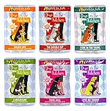 The Weruva Dogs in the Kitchen Wet Dog Food Variety Pack includes 6 fun flavors including: