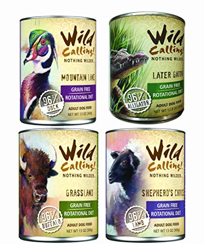 Wild Calling Canned Dog Food 13oz x 12 cans, 3 Duck, 3 Alligator, 3 Buffalo, 3 Lamb