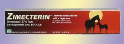 0.21 oz Paste — Zimecterin 1.87% is an Anthelmintic and boticide ivermectin 1.87% paste removes worms and bots with a single dose. For oral use in horses only.