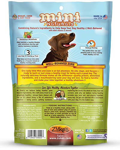 Zuke's Mini Naturals Dog Treats, Fresh Peanut Butter Formula, 16-Ounce